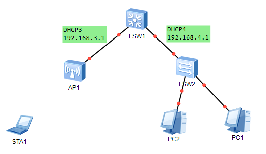 dhcp服务均在LSW1上,也起了虚接口