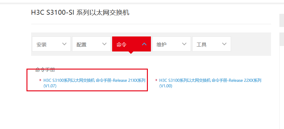 http://www.h3c.com/cn/Service/Document_Software/Document_Center/Switches/Catalog/S3100/S3100-SI/Command/Command_Manual/S3100_CM-Release_21XX(V1.07)/ 这个手册是老版本交换机V3 的命令手册