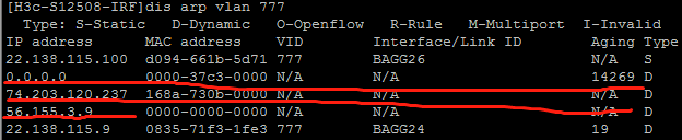 在12508交换机上学习VLAN 777的arp 信息发现有如下莫名IP地址出现