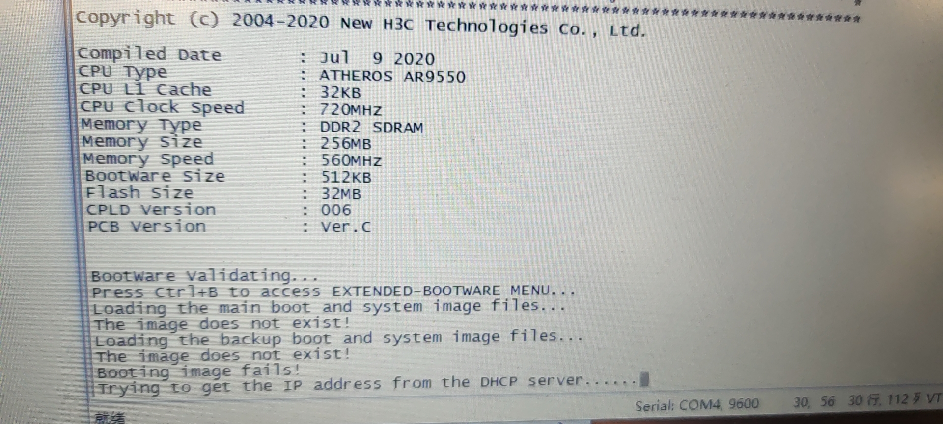 之后进入Bootrom界面 Ctrl+F格式化后 重新连接交换机并重启,仍然处于Bootrom界面。