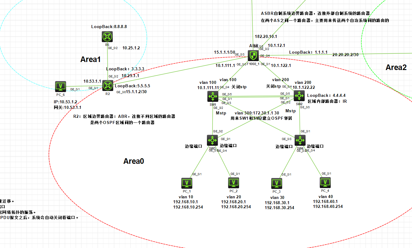 实验:AREA0区域部署一台内部服务器,是放在防火墙下?还是放在SW1三层交换机下?有什么区别?