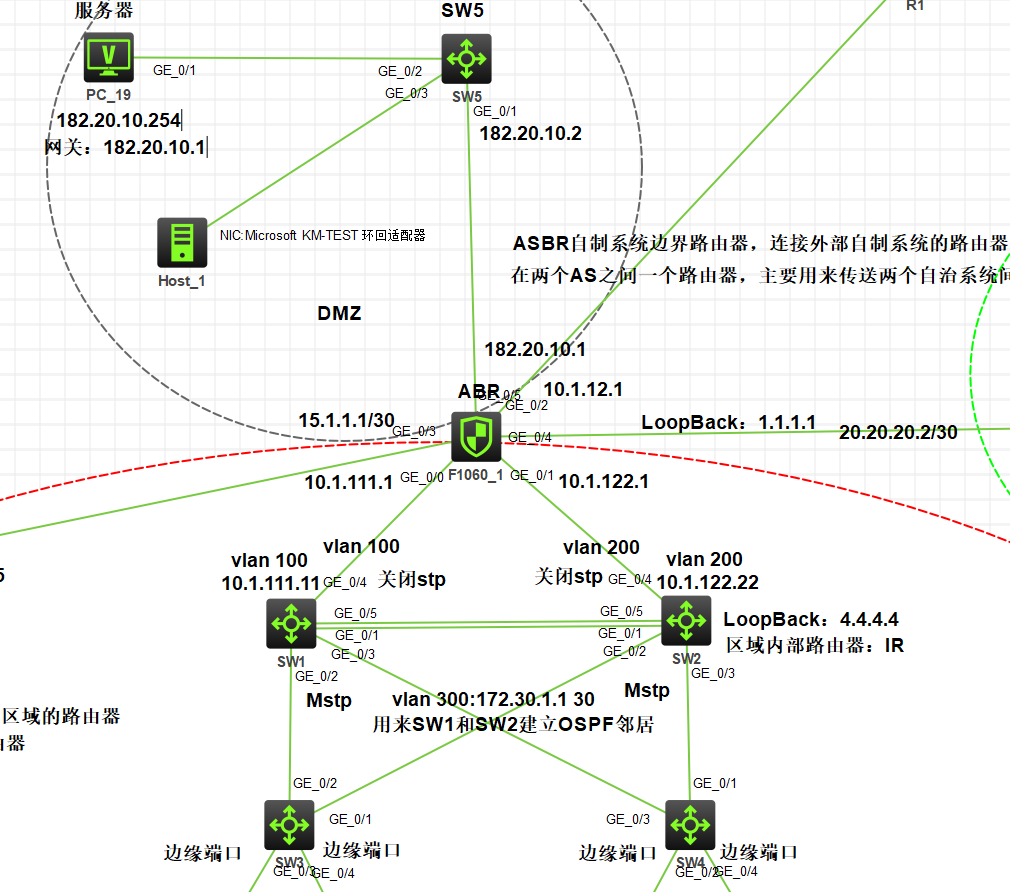 防火墙没有宣告182,因为DMZ我没把它划入任何OSPF区域