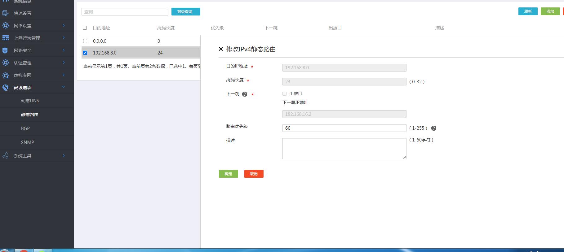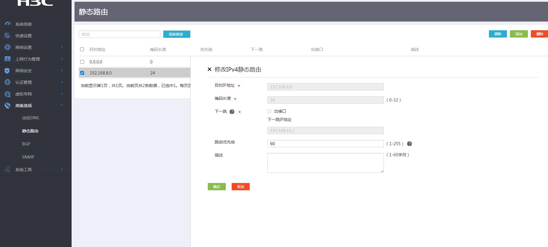 2、192.168.8.X上拨号成功后,要看一下有没有生成一条默认路由指给MSR830(PC)或者指给VT口(设备),如果没有默认路由回来的话,那么需要自己手工配置一条