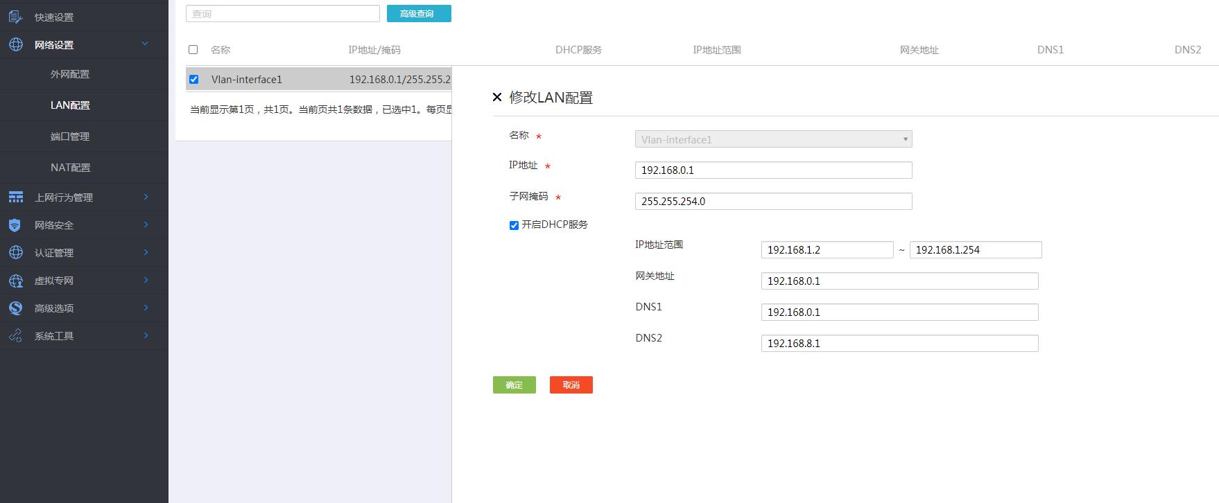 这是现在配置,将电脑IP设置为192.168.0.X网段能访问192.168.0.X网段的设备,如果自动获取IP就不能访问,但可以访问192.168.8.X和192.168.1.X内的设备,两个网络是隔离了的。