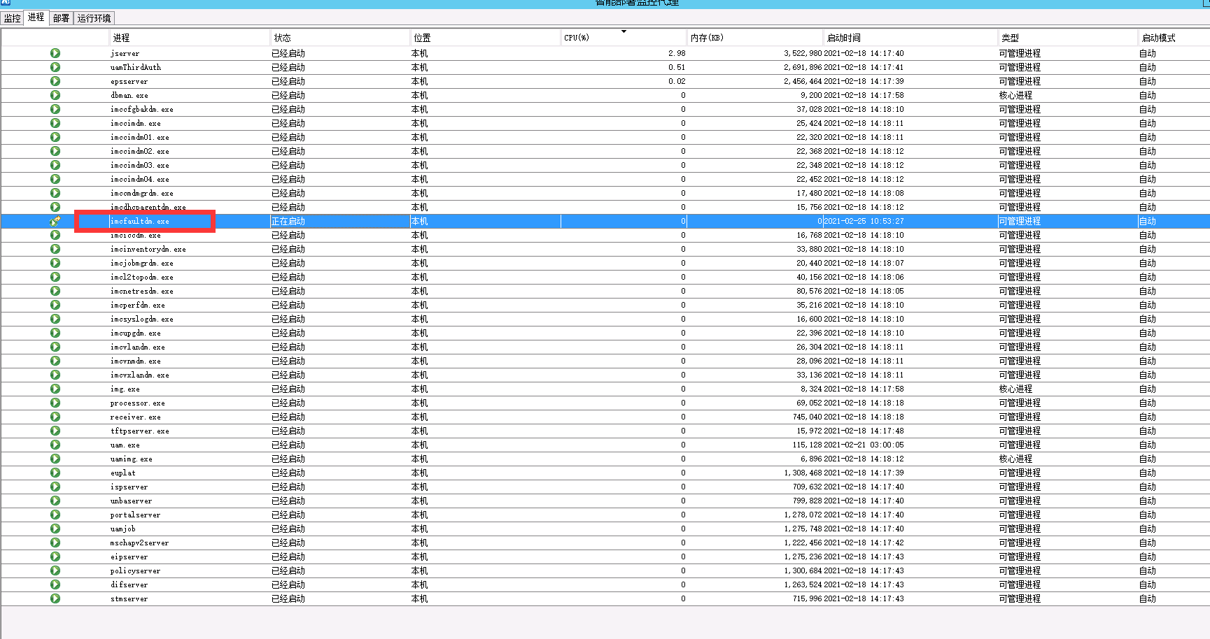 在服务器进程上查看到某个进程一直“正在启动”