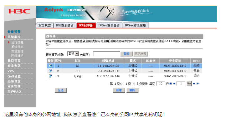 但是 我要在对端添加它自身本端的公网IP 但是需要共享秘钥 我不知怎么办。