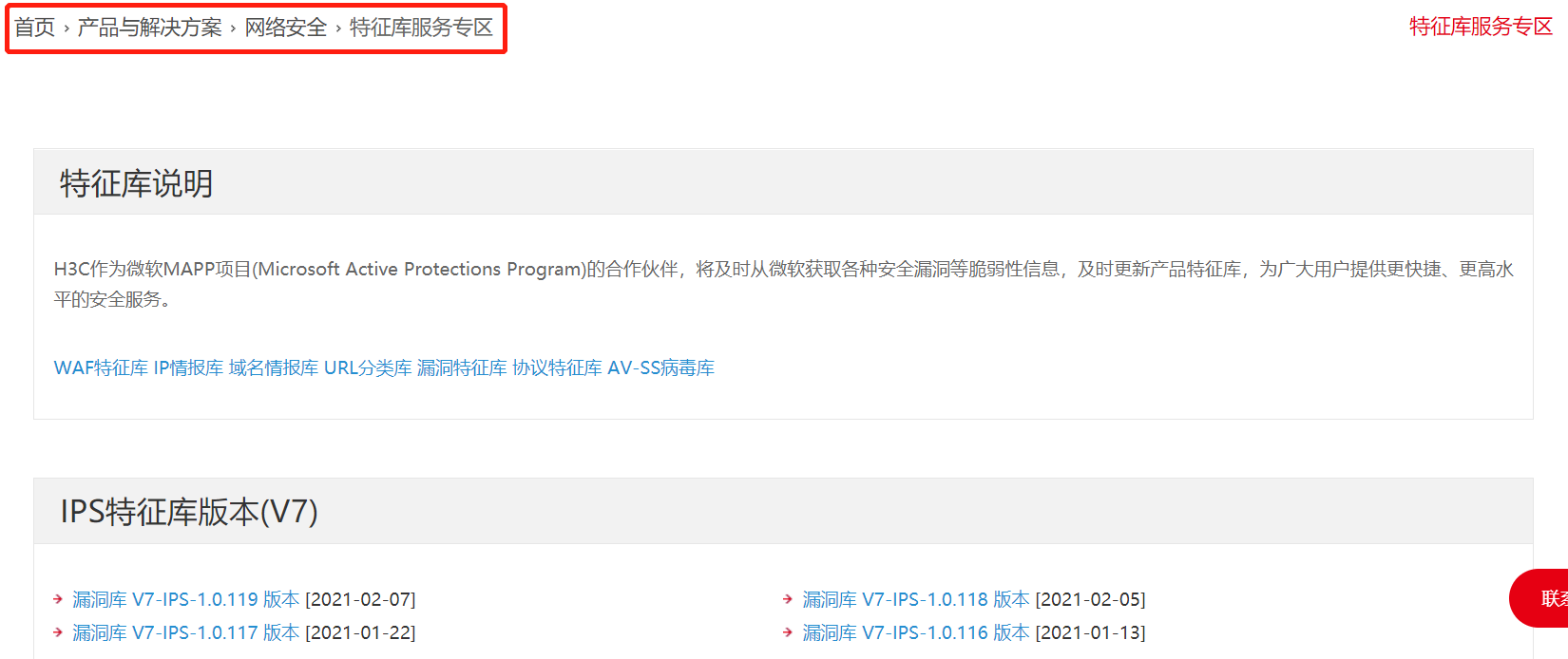 请问下ips产品的特征库在官网哪里下载
