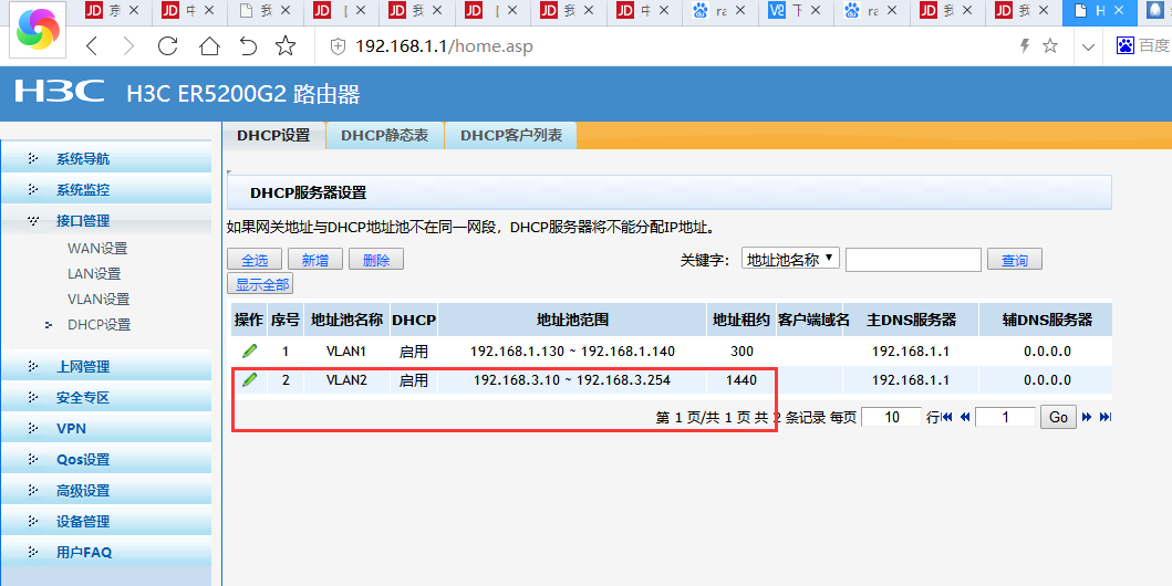 3.在DHCP中设置 地址池
