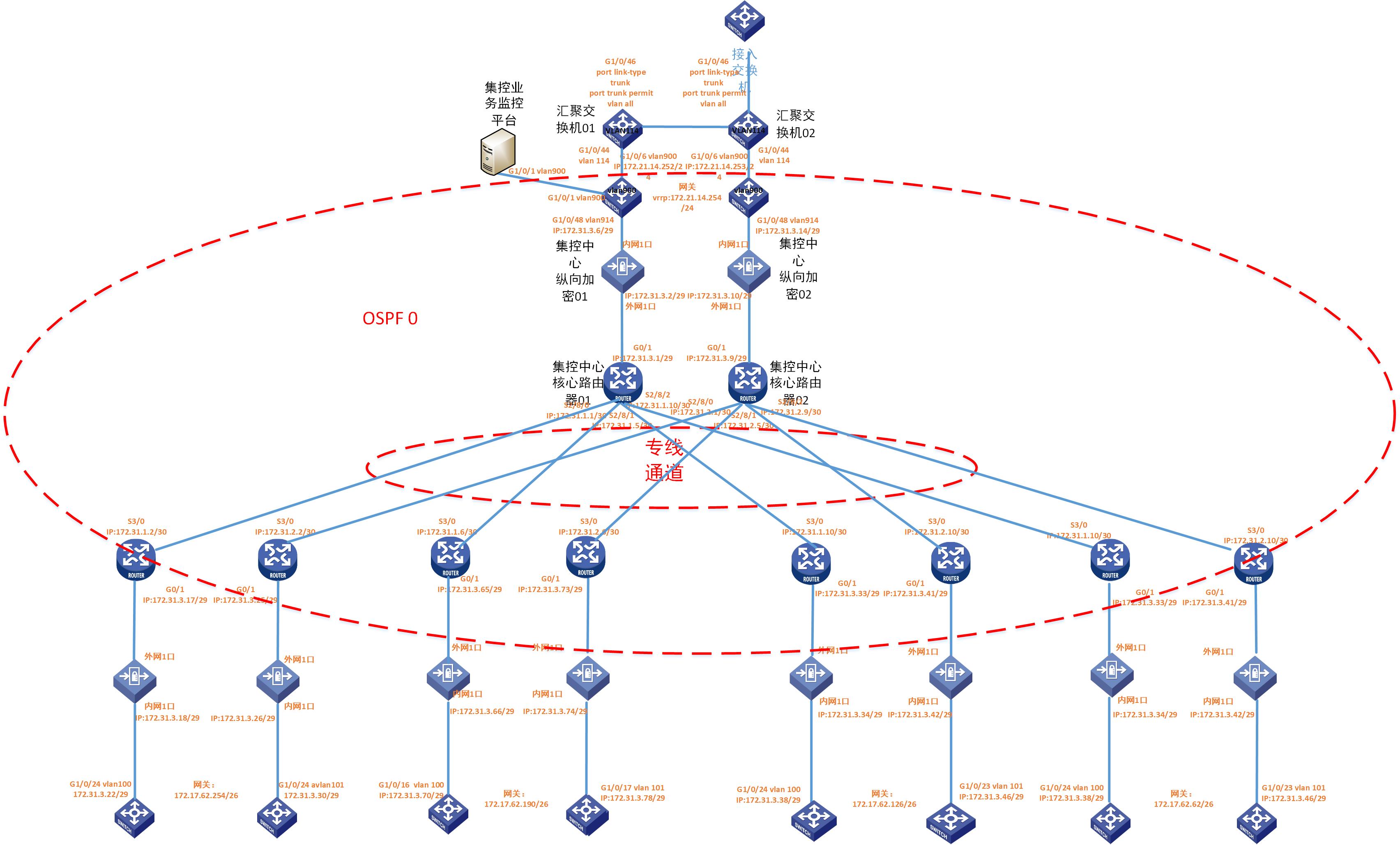 路由都是没问题的 。我的意思是厂站有的业务在交换机1 有的厂站业务在交换机2 都能访问集控端的服务器 。不要厂站业务统一在交换机1或在交换机2 才能访问集控服务器