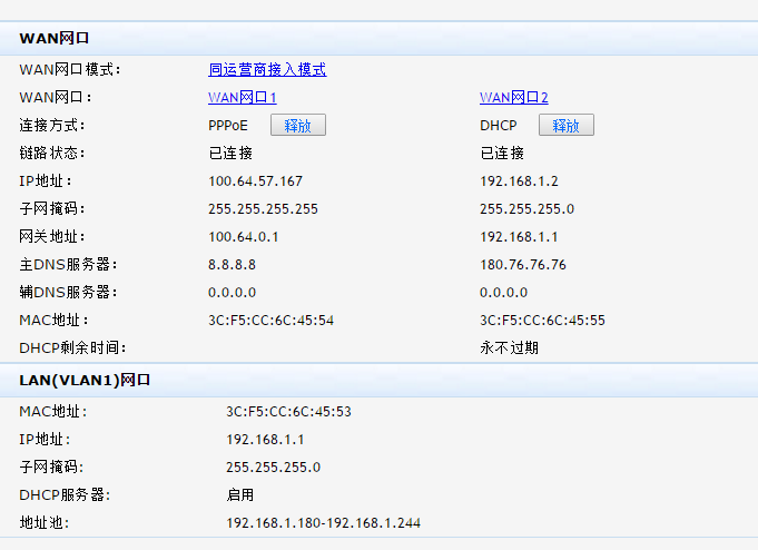 WAN1是pppoe拨号上网,WAN2是接在电信网关下面,电信网关没有密码进不去没法修改地址,这样的情况配置下来会对网络有影响吗?