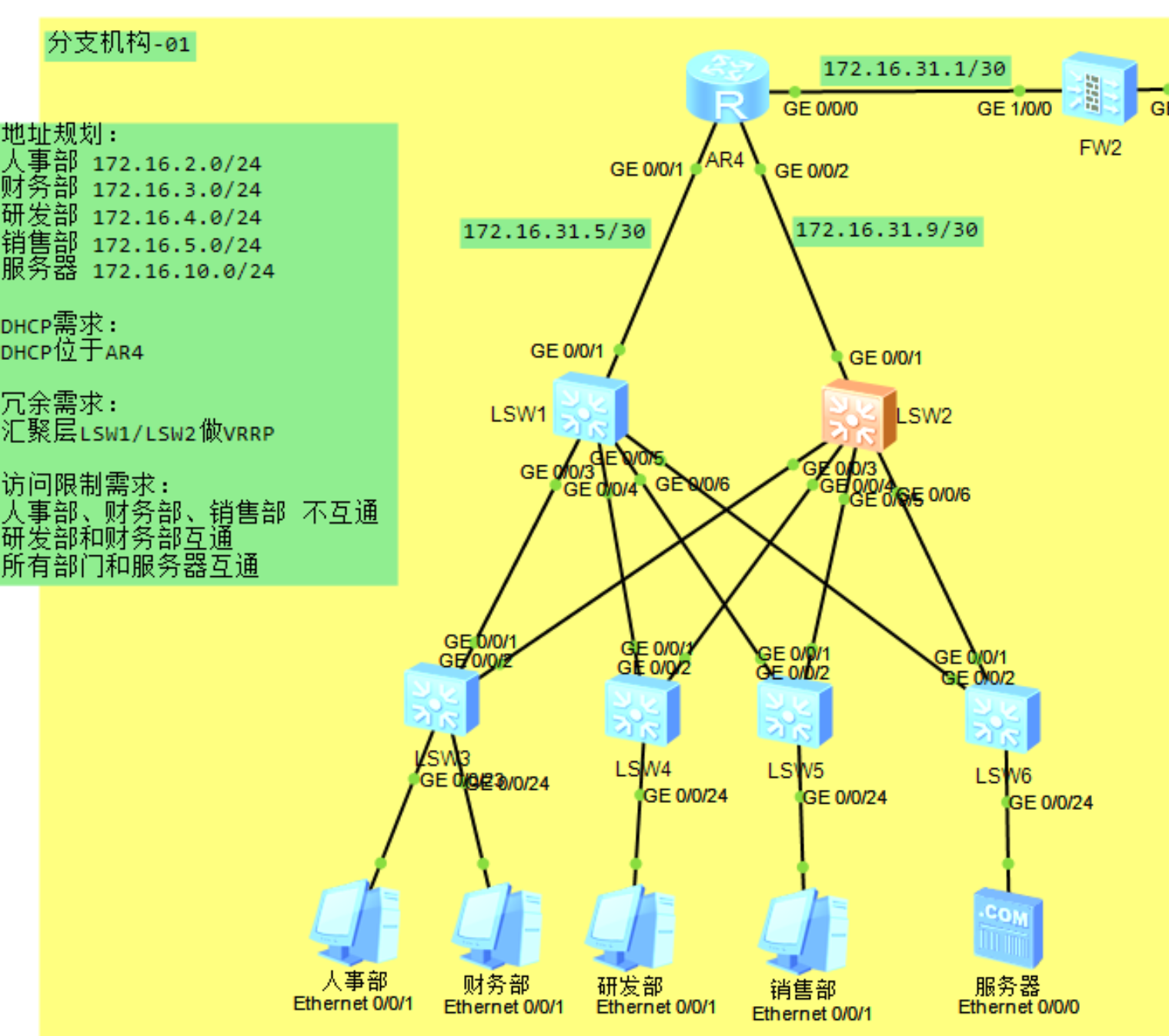 如图所示,LSW1在VLAN2\3\10中为主设备。LSW2在VLAN4\5中为主设备