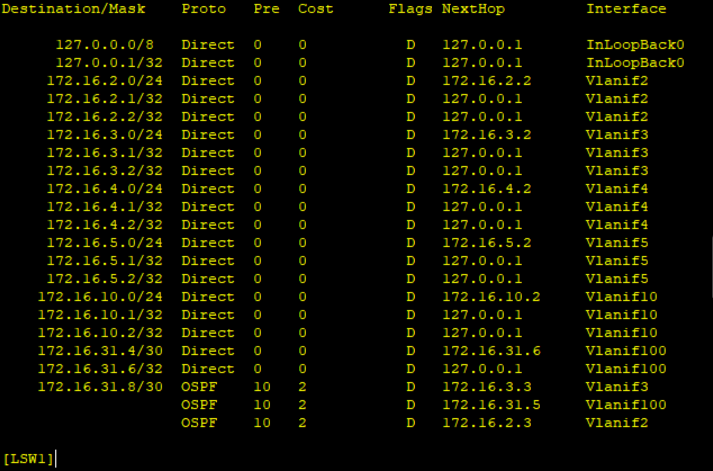 但是在LSW1中的,并没有到VLAN3、4的OSPF路由。而LSW2中却有。