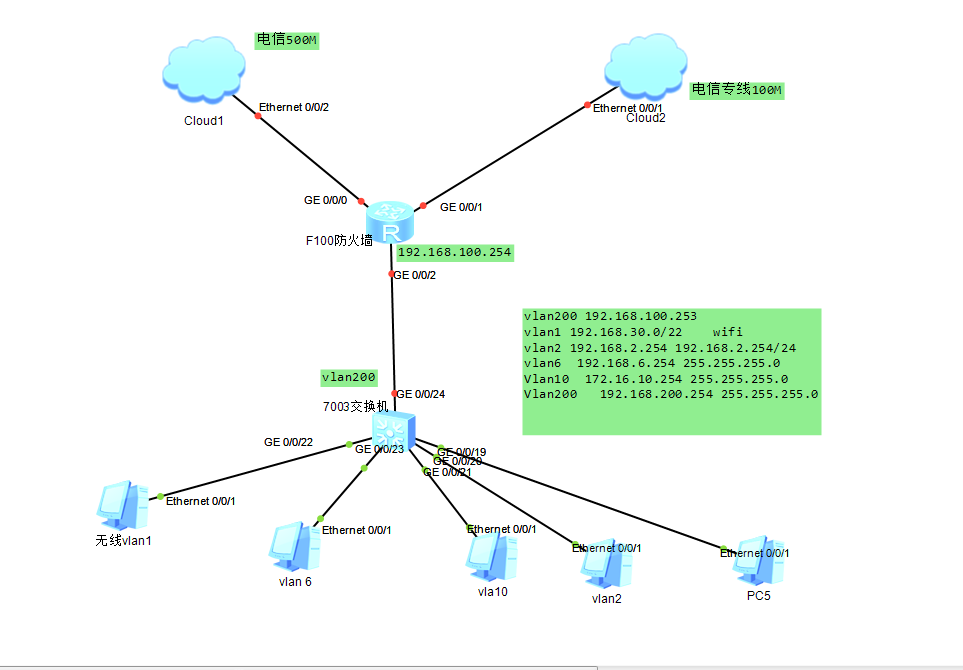 F100防火墙拔号,1条500M,1条100M专线,速度路不启来