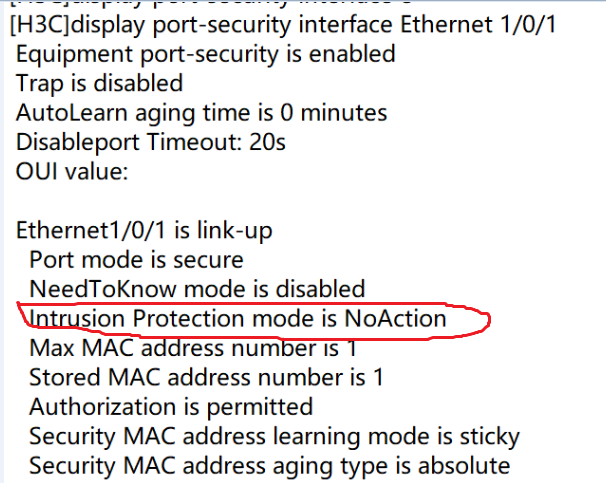 入侵检测特性对端口接收到的数据帧进行检测,源MAC地址未被端口学习到的报文或未通过认证的报文,被认为是非法报文,如果发现非法报文,则对接收非法报文的端口采取相应的安全策略,包括端口被暂时断开连接、永久断开连接或MAC地址被过滤(默认3分钟,不可配),以保证端口的安全性。