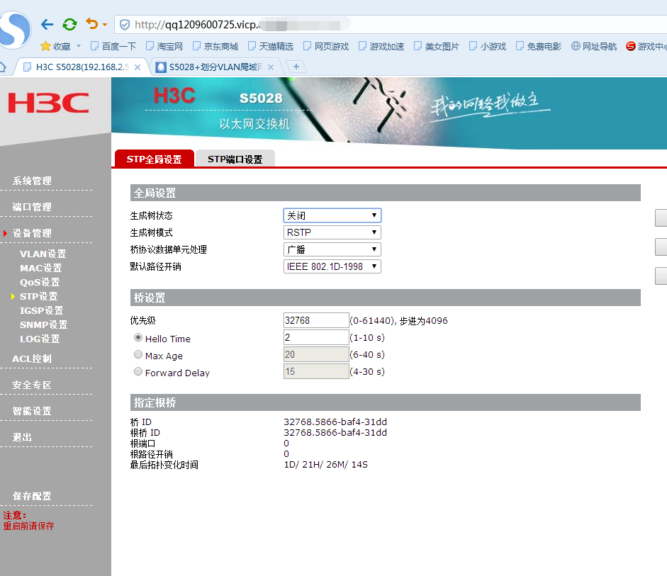 S5028+STP全局设置和端口设置的区别