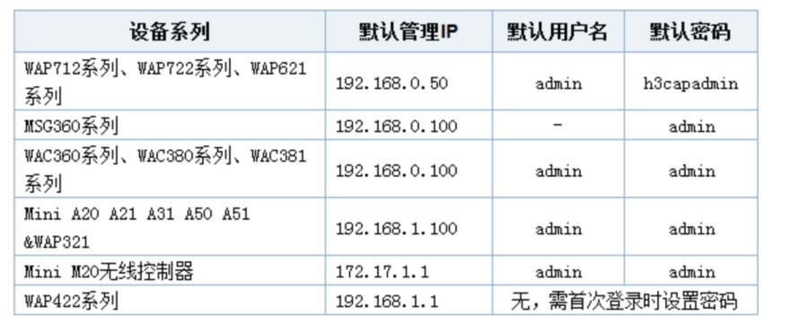 # 设备出厂时已经默认启用了HTTP服务,默认的Web登录信息如下表所示,均为小写: