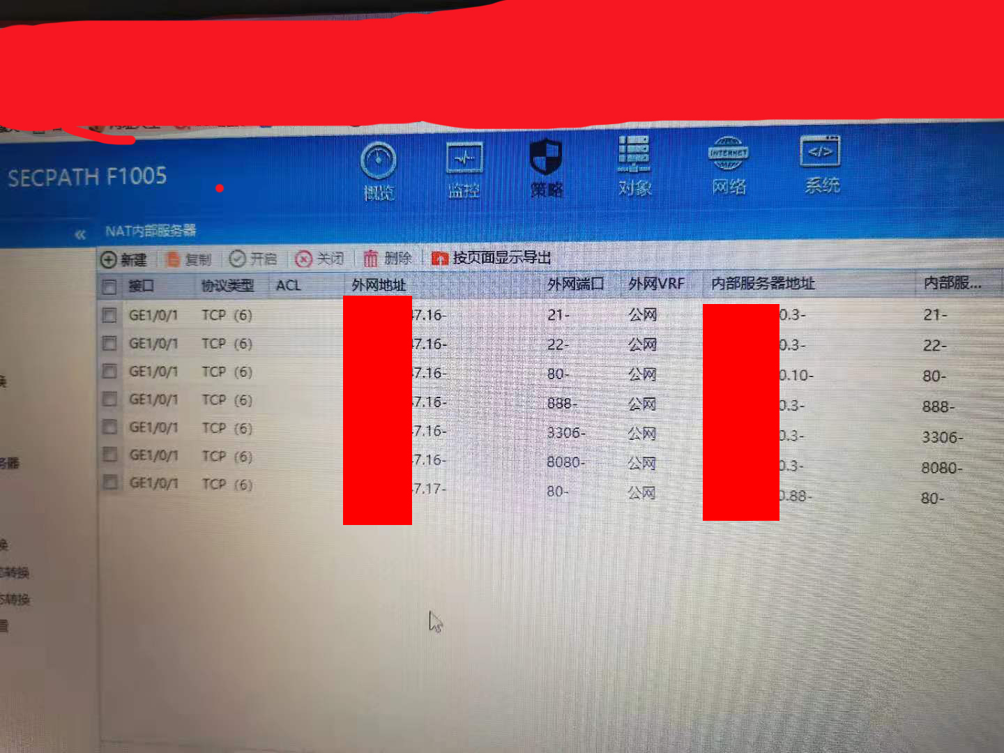f1005 防火墙,几年前购买,做了一个网站。工程师配置好了之后合适。因业务需要,现在增加一个网站,并增加一个ip。新网站在本机在本服务器调好了以后正常打开,在防火墙下的路由器下接入的笔记本也正常打开。但是在别的地方打不开,并且ping不通这个新ip.