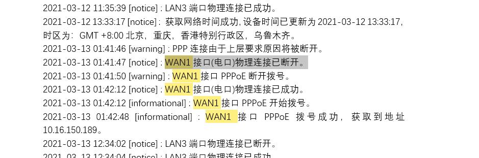 如图所示,LAN3接口每天都断开一次,是什么情况?