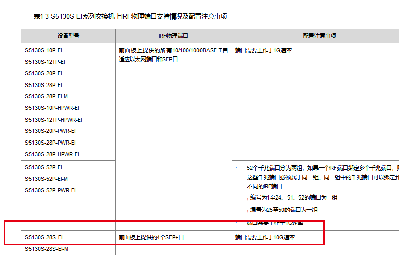 你好!S5130S-28P-EI有24个千兆网口,4个万兆光口,使用光口堆叠的时候,接口速率必须在10000M,所以这个设备上没有千兆光口,虽然可以使用千兆模块降速到1000M,但是无法用于堆叠,请知