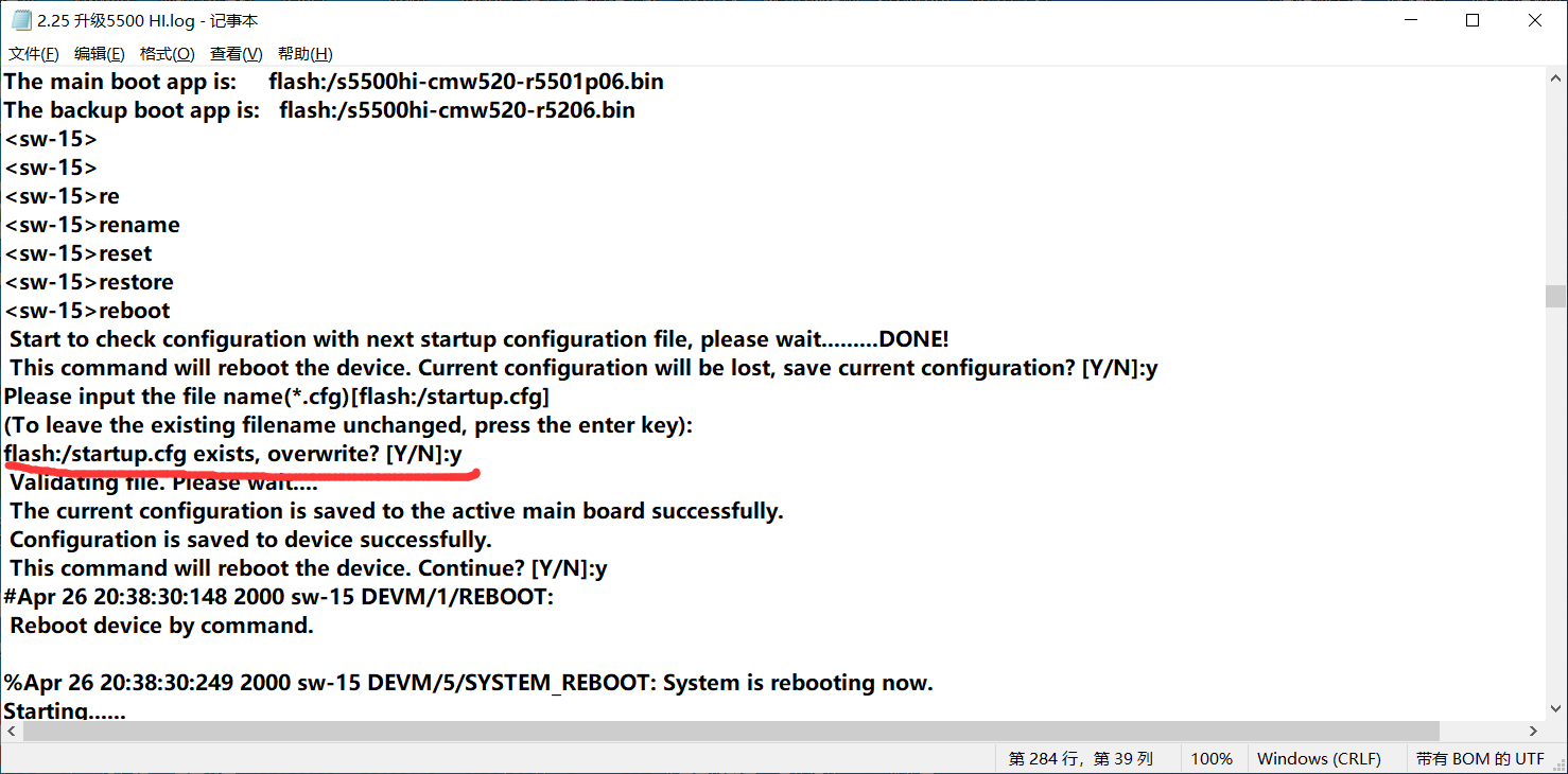 我在将交换机进行版本升级的时候,已经指定好下次重启使用的版本,在重启过程中是否要覆盖,我选了Y,后面重启后显示版本确实是新版本,这里选择Y,有什么问题吗???有点蒙