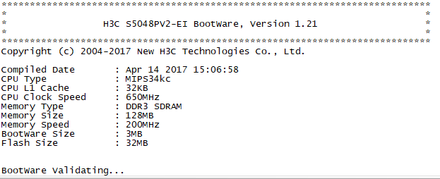 S5048PV2-EI启动时无法加载BootWare,卡在BootWare Validating...的状态。