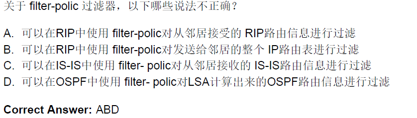 OSPF使用filter-policy过滤时应注意使用的设备角色: