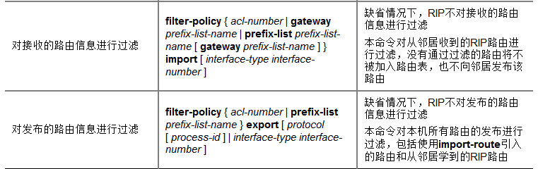 filter-policy { acl-number | prefix-list prefix-list-name | route-policy route-policy-name } import |