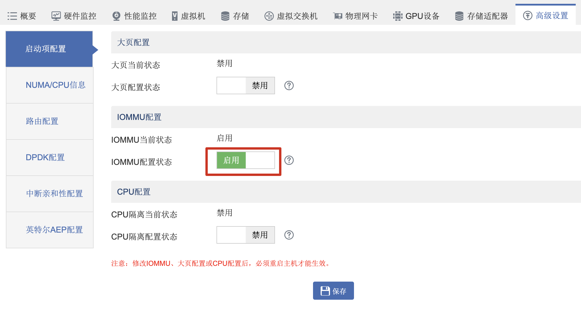 2、CAS侧宿主机开启IOMMU;