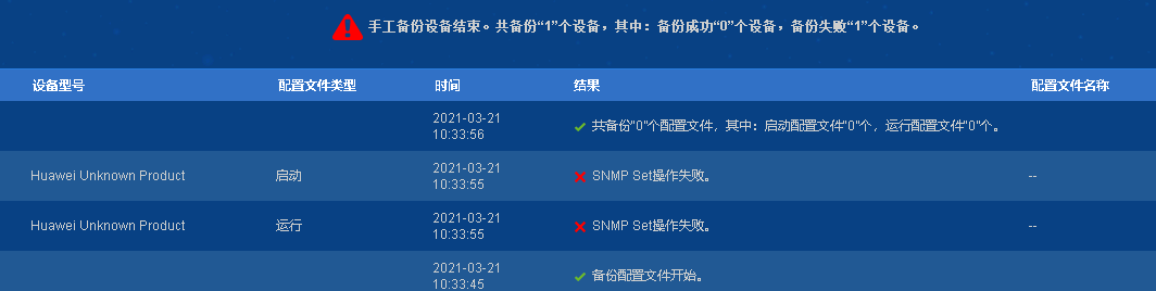 这个型号是否在H3C MIB里面,感觉这台设备没有被识别成交换机。需要导入对应华为的mib节点来的识别后 再做备份的。