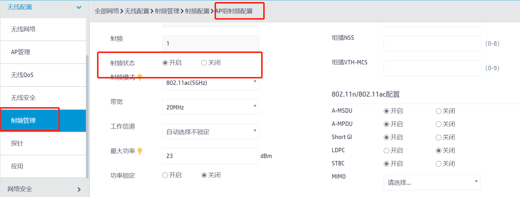 AP管理中组管理,分组后分组射频管理无法开启