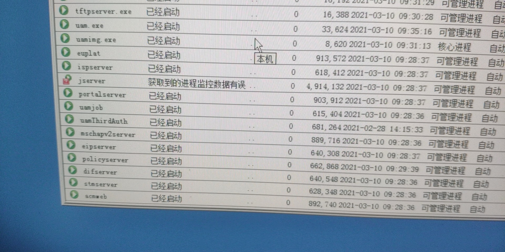 启用portal认证,故障现象:早上一早认证界面无法弹出,查看CPU利用率有一个javaw.exe利用率满载,imc进程管理中jserver进程异常,需要重启才能恢复正常,正常使用1天后,第二天早上又会出现无法弹出认证界面的现象,同时imc的管理界面也无法打开。