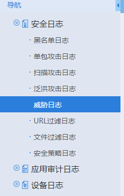2、查看 监控>安全日志>入侵防御略日志/威胁日志 即可