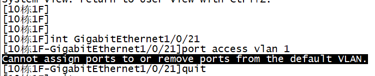 为什么我划分端口给 vlan1时出现Cannot assign ports to or remove ports from the default VLAN.
