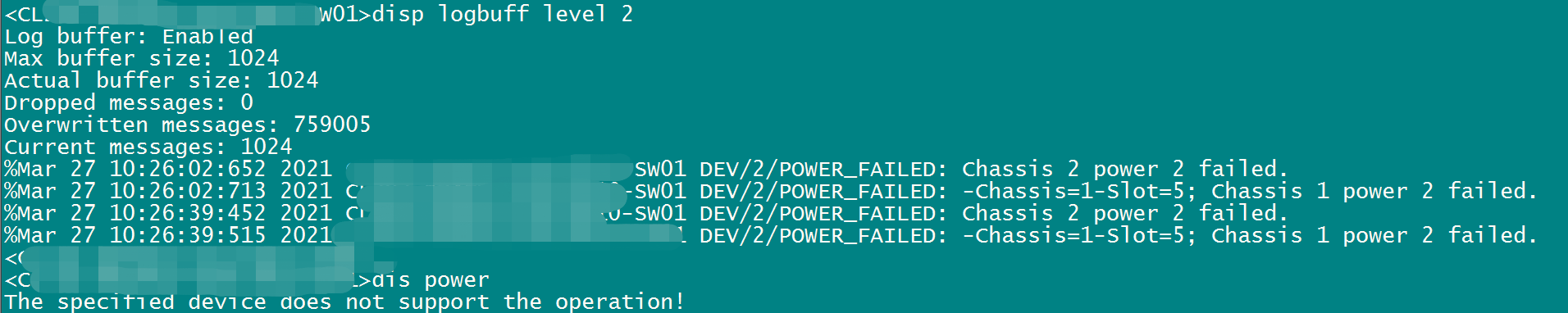 客户H3C S7610交换机系统日志告警显示电源故障,通过display power 命令,系统提示设备不支持此操作,请问要怎么查看?谢谢!