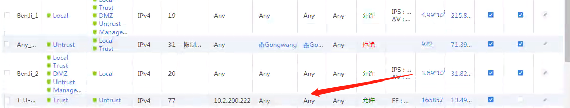 上面两条放通的是本地域,而业务是在trust-untrust域,这个。。有点不太明白