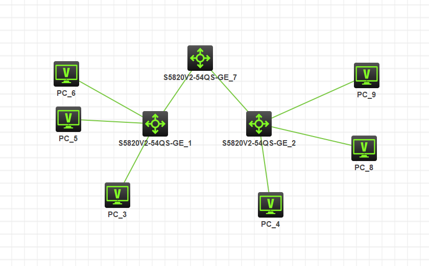 按照您的配置,下面所有的PC都在一个VLAN。但是我需要下面的PC3/4/5/8在一个VLAN,PC6/9在一个VLAN,所有设备都是自动获取IP