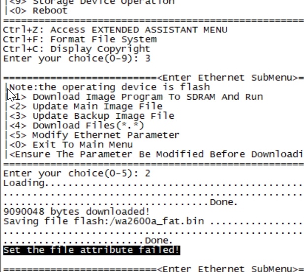 WA2620I-AGN当前是瘦模式,根据官方文档做版本升级,提示报错: Set the file attribute failed!