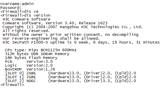 您好!请问有H3C Secpath F1000-S的配置说明书、怎样设WEB登录及怎样升级(现版本是V3.4,如图),升级包在那可以下载?