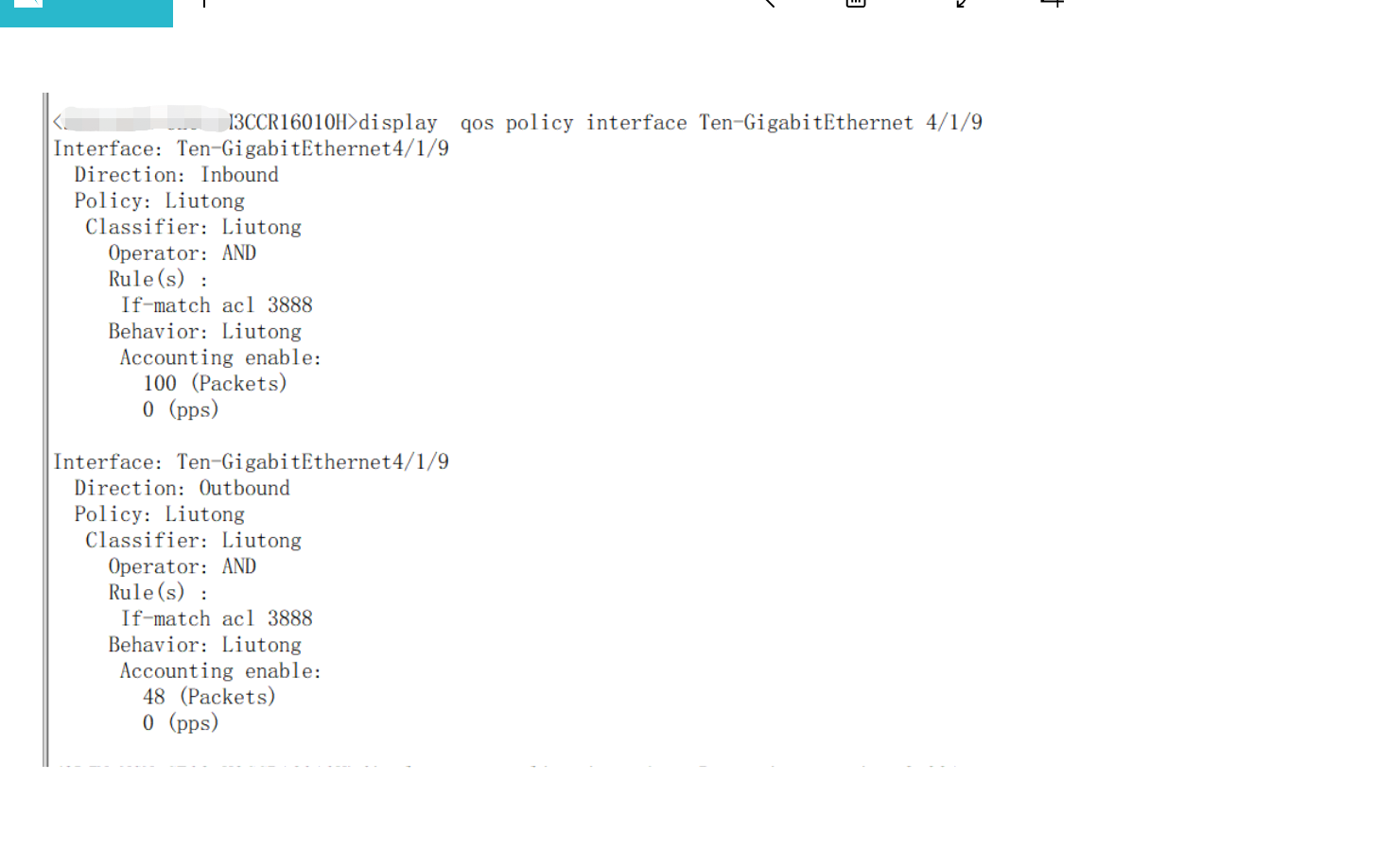 2、其次检查QOS策略是否已应用到了正确的端口和方向。