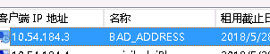 部分客户获取不到IP地址,登录DHCP服务器后查看IP地址分配情况,发现有些地址为bad_address状态,重启DHCP服务器后用户获取IP地址正常。