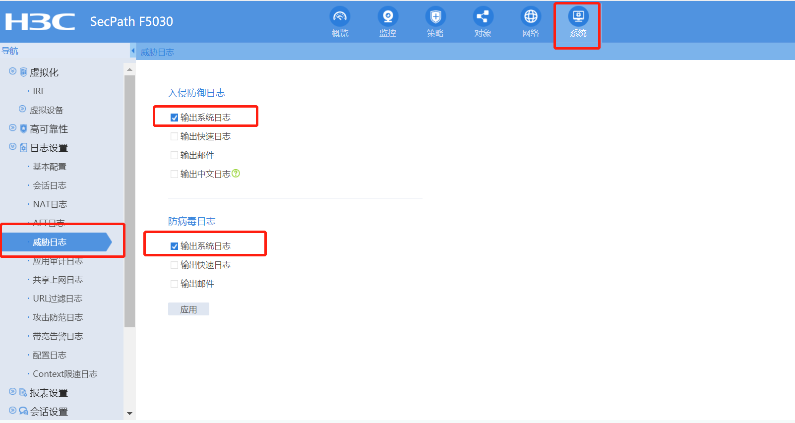 系统-日志设置-系统日志设置:勾选了是否将系统日志输出到日志缓冲区,添加了2台日志主机 攻击防范日志设置:勾选了单包攻击防范日志聚合输出、黑名单日志功能 监控-安全日志-安全策略日志,能看到命中的策略日志,但是攻击日志一条都没有