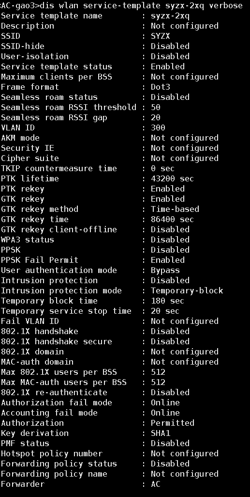 display wlan service-template [ service-template-name ] [ verbose ]查看