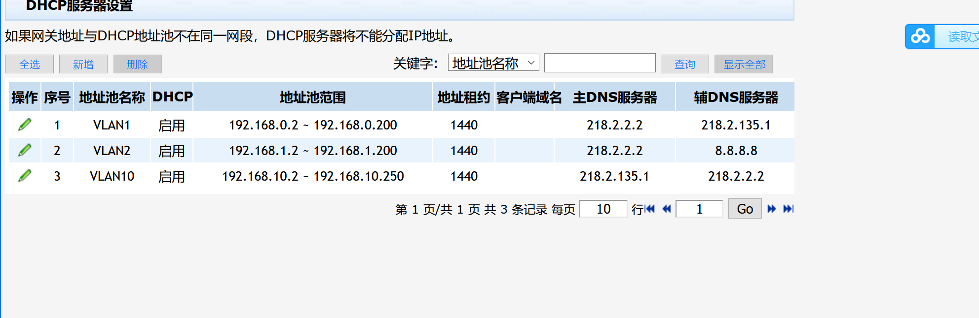 3、检查DHCP分配的地址池IP是否和VLAN IP在同一个子网内。
