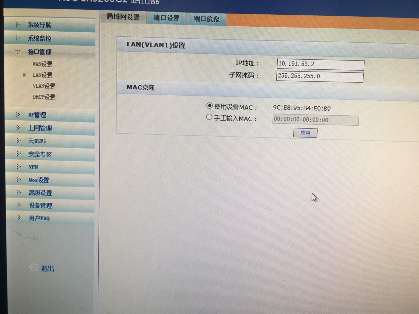 目前就一个网段 为10.191.53.0   用的LAN1接口