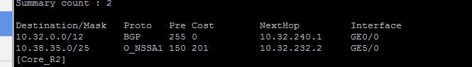 到NSSA区域的路由断掉后会这样,不知道怎么解决,想的是优先下面这条路由。
