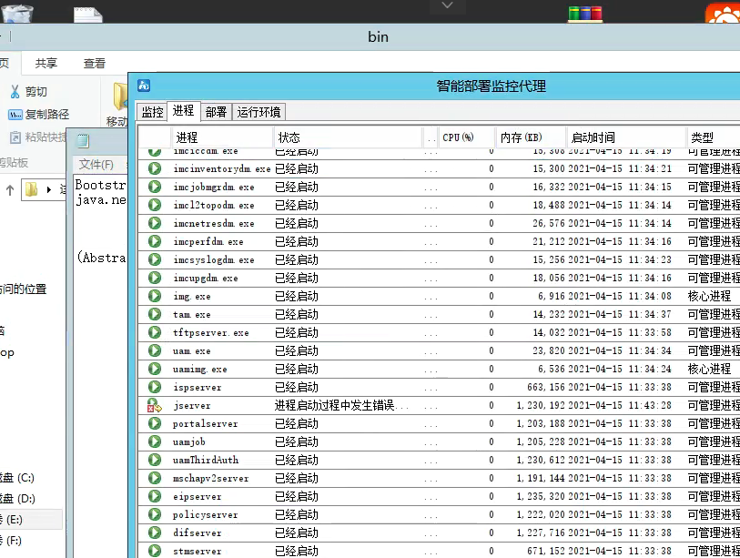 Bootstrap: Binding server port error. The server already started. java.net.BindException: Address already in use: NET_Bind at java.base/java.net.PlainSocketImpl.bind0(Native Method) at java.base/java.net.PlainSocketImpl.socketBind(PlainSocketImpl.java:132) at java.base/java.net.AbstractPlainSocketImpl.bind(AbstractPlainSocketImpl.java:436) at java.base/java.net.ServerSocket.bind(ServerSocket.java:381) at java.base/java.net.ServerSocket.<init>(ServerSocket.java:243) at com.h3c.imc.bootstrap.ServerStartup.bind(ServerStartup.java:791) at com.h3c.imc.bootstrap.ServerStartup.start(ServerStartup.java:509) at com.h3c.imc.bootstrap.ServerStartup.process(ServerStartup.java:407) at com.h3c.imc.bootstrap.Bootstrap.process(Bootstrap.java:139) at com.h3c.imc.bootstrap.Bootstrap.main(Bootstrap.java:249)