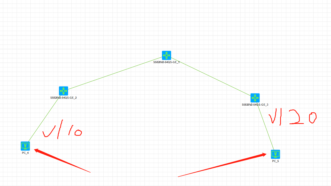 ge3 做的vlan 20 pc5 归到 vlan 20 能够正常通信 ge3 跟ge1 通过 port link-mode route 连接 ge3是 ge1 得子网 pc5 能ping通 ge3得子网地址 但是 ping 不通 ge1得网关地址 跪求大佬解答