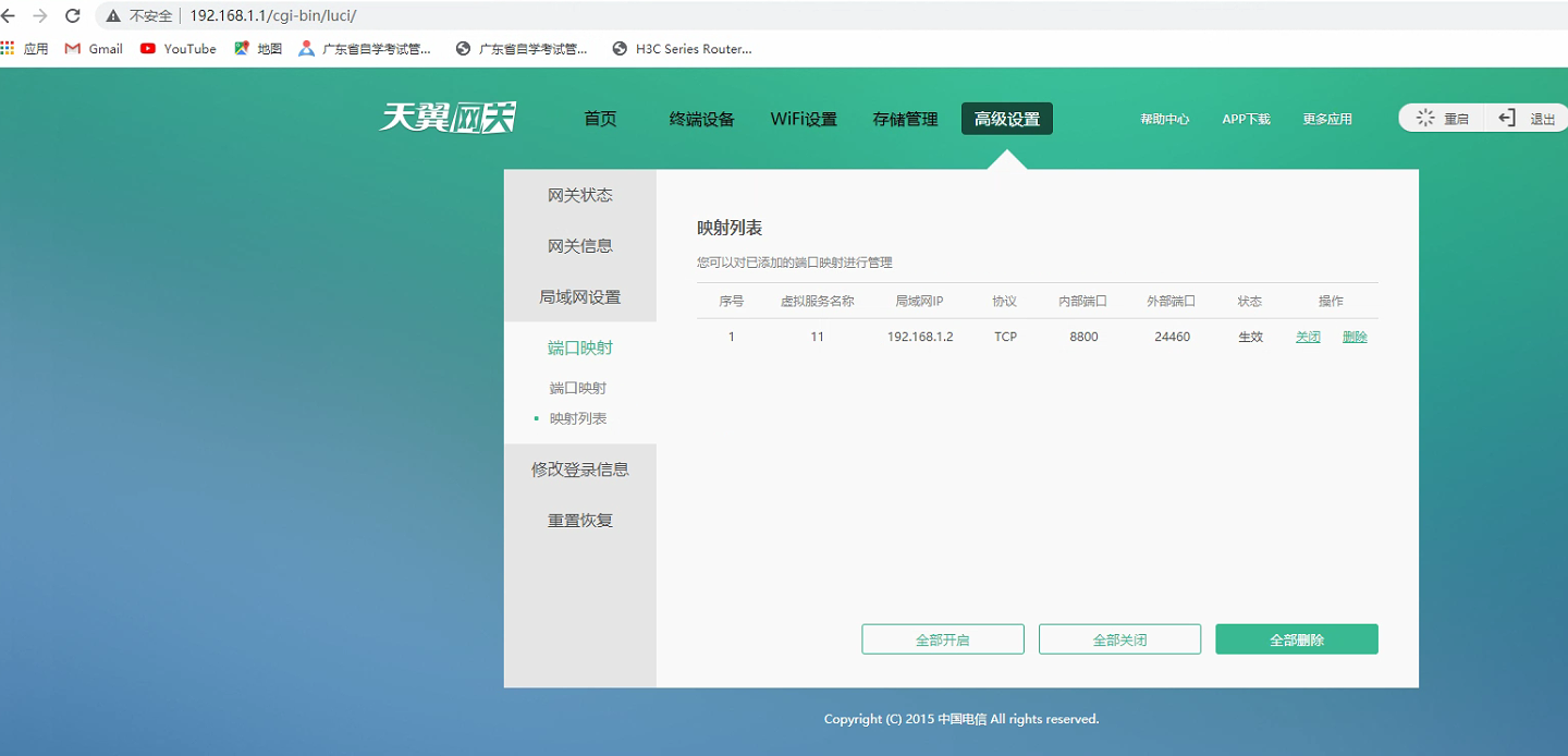 另外天翼光猫映射的是RSR26映射出来的外部地址。