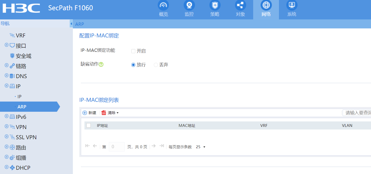 也可在系统模式下使用动态绑定表项的方式进行绑定,命令如下: