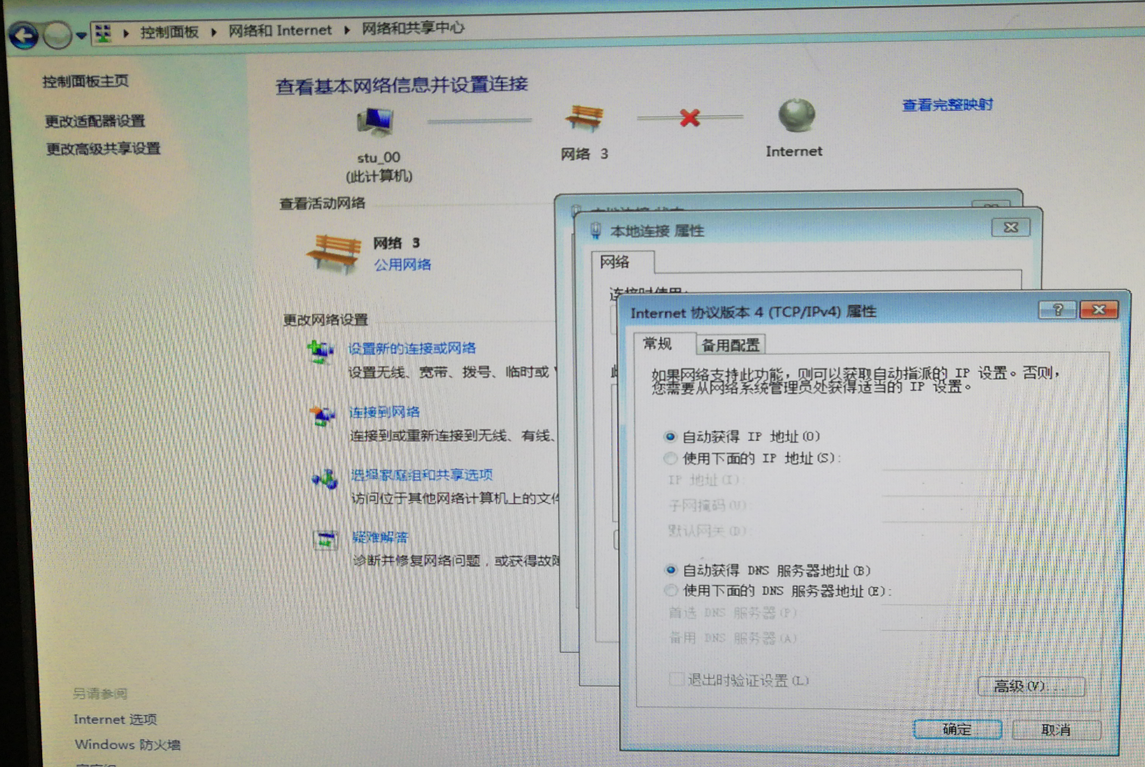 检查学生机是否已正确填写或获取到IP地址、子网掩码、默认网关、DNS。